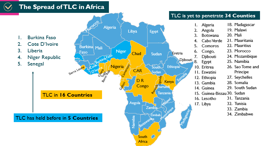 Today, TLC has spread to 206 Cities and towns in 18 Countries in African, Europe, Australia and North America.